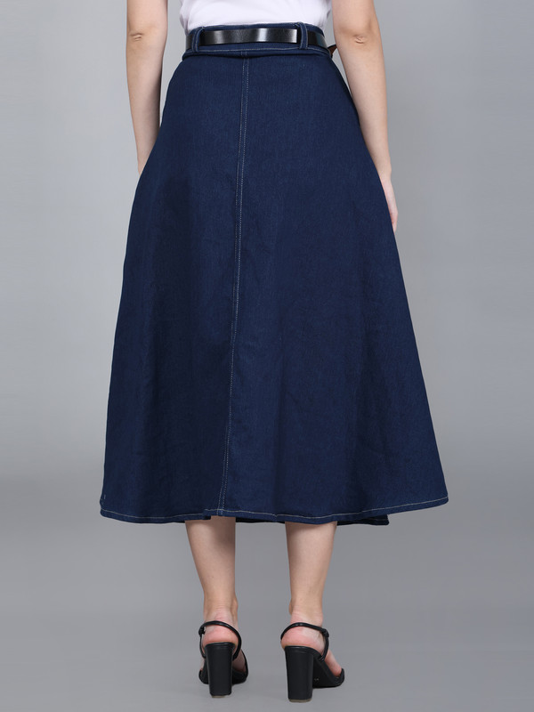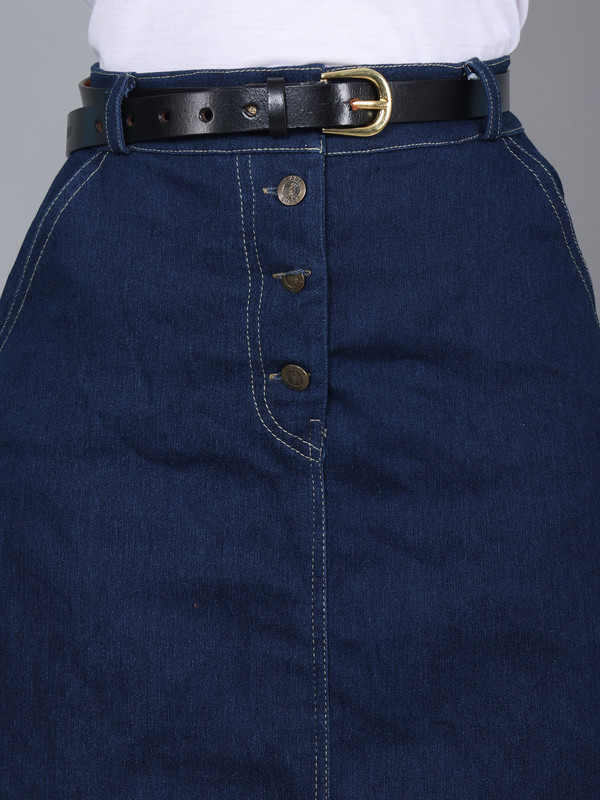 The Codaisy Blue Solid Denim Midi-Length Skirt, a timeless staple for your wardrobe. With its classic button detailing and waistband, this skirt exudes effortless charm and sophistication. The slip-on closure ensures easy wearability, while the straight hemline adds a touch of simplicity and versatility. Crafted from premium denim, it offers both durability and comfort, perfect for everyday wear. Whether paired with a casual top for a relaxed look or dressed up with a blouse for a more polished ensemble, this skirt is sure to become a favorite go-to piece.