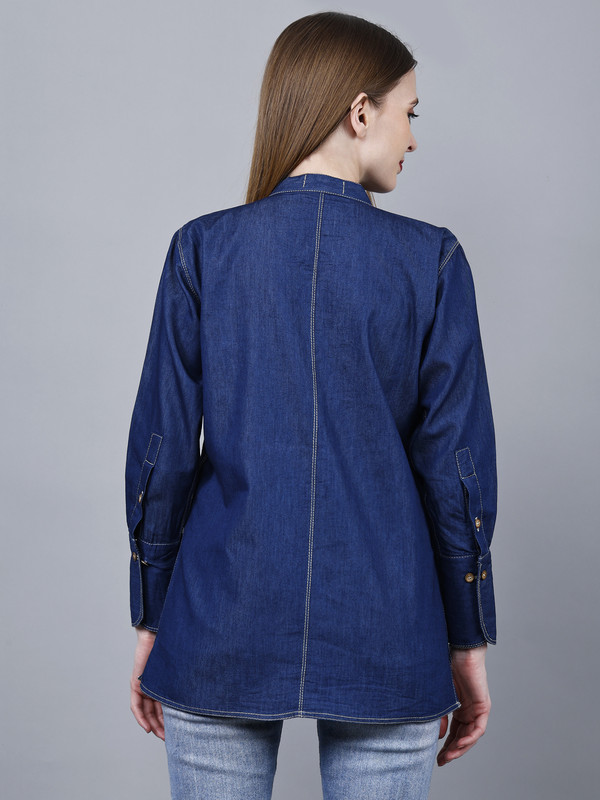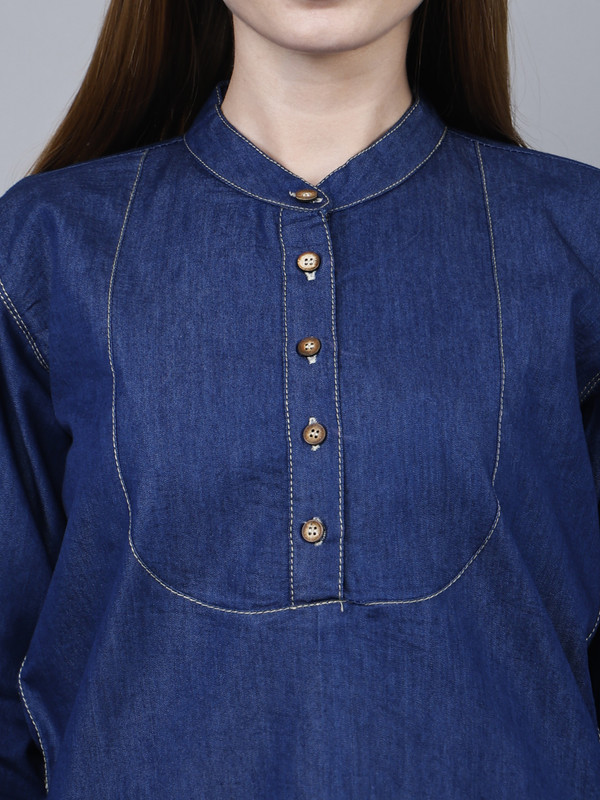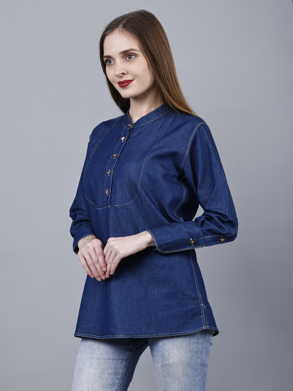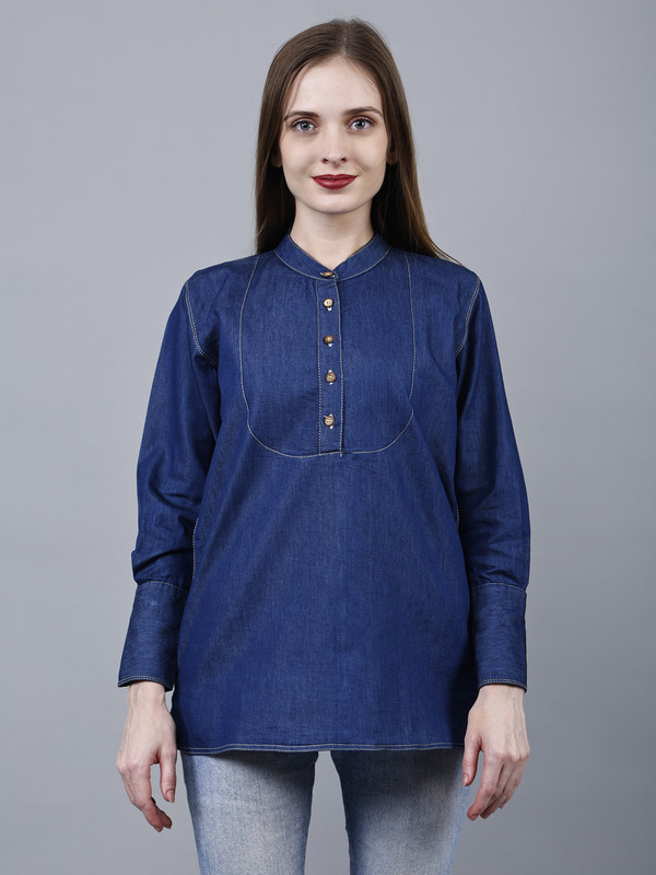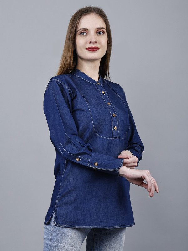 Introducing our Women’s Full Sleeve Cotton Blue Denim Shirt Top, the perfect addition to your wardrobe. This western-style short kurti type jeans shirt is designed to elevate your casual, vacation, college, or office wear. Made from high-quality cotton denim, it offers both comfort and style, making it ideal for any season.Available in plus sizes, this trendy and stylish shirt is suitable for women of all shapes and sizes. Whether you’re heading to the office or enjoying a summer getaway, this versatile top is a must-have. The simple yet fashionable design adds a touch of elegance to any outfit, making you stand out from the crowd.Crafted with attention to detail, this shirt is not only fashionable but also durable. The premium denim fabric ensures long-lasting wear, while the full sleeves provide added coverage and warmth during the colder months. Its vibrant blue color adds a pop of color to your ensemble, making you look effortlessly chic.Upgrade your wardrobe with the latest fashion trends and embrace the comfort and style of our Women’s Full Sleeve Cotton Blue Denim Shirt Top. Perfect for any occasion, this shirt is a true wardrobe staple. So why wait? Grab yours now and experience the perfect blend of style and comfort.